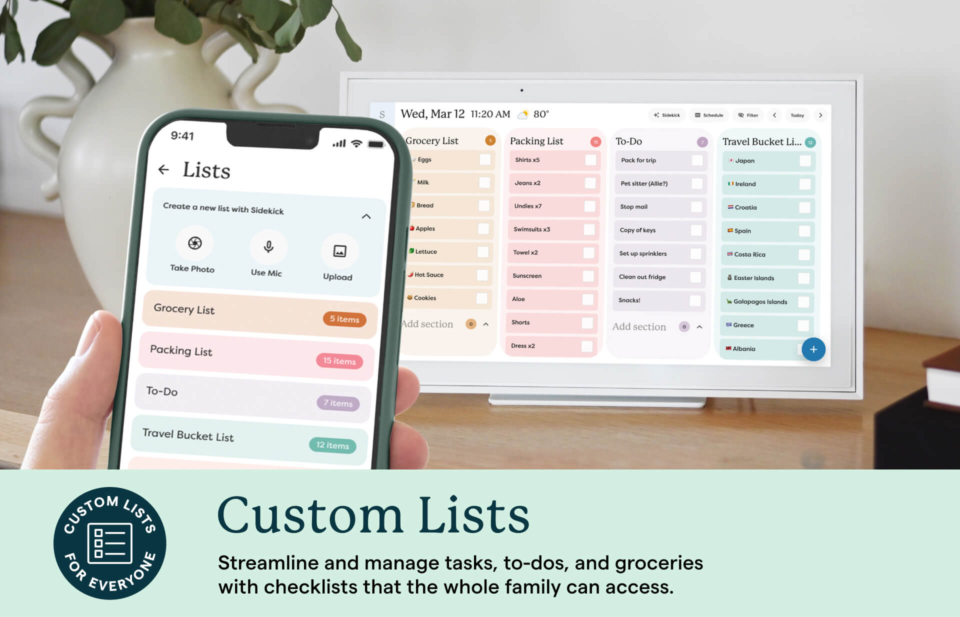 Custom Lists: Streamline and manage tasks, to-dos, and groceries with lists that the whole family can access directly on the device or on the go in the free mobile app.