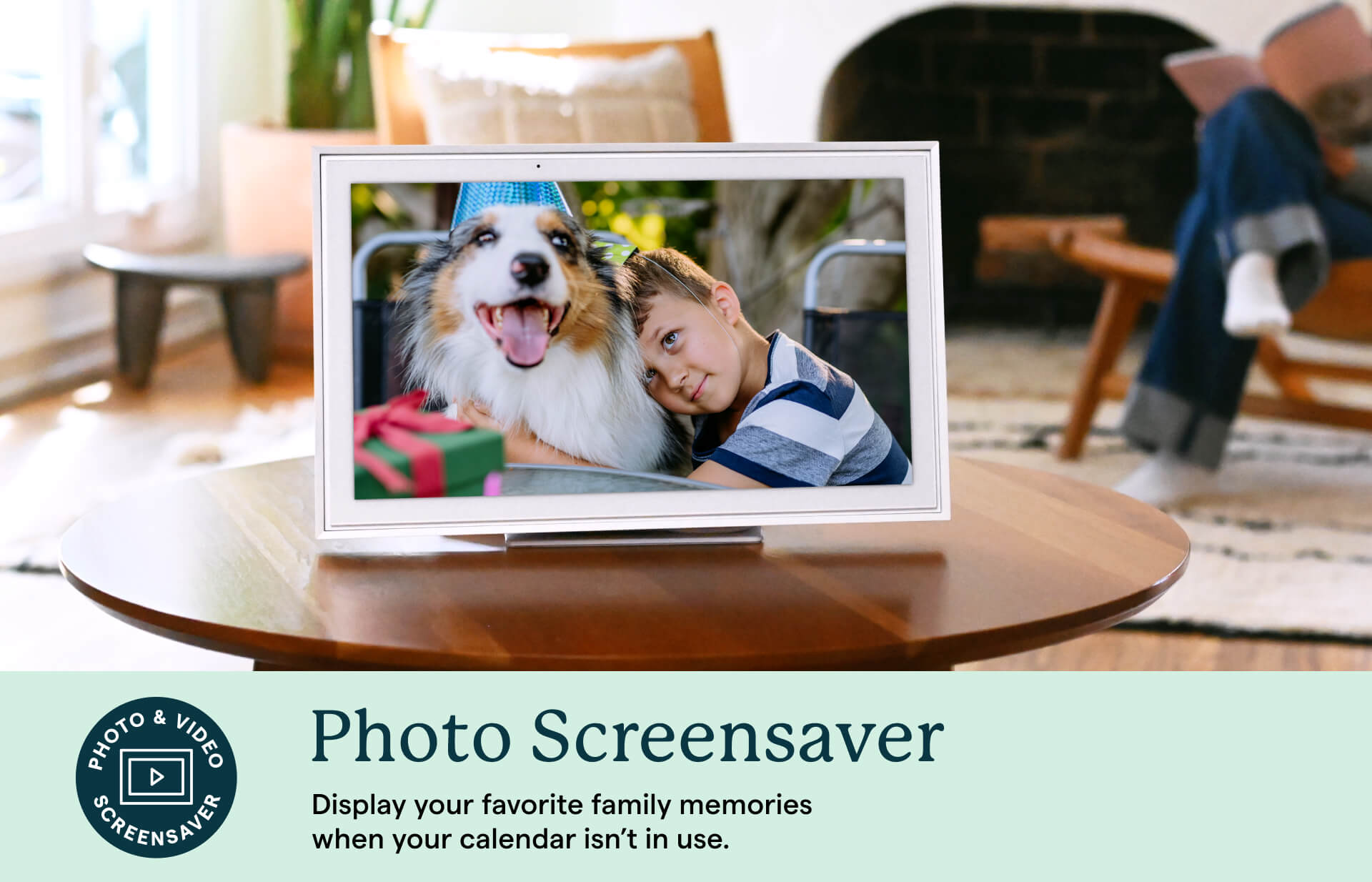 Family photo screensaver on the Skylight 15-inch digital calendar.