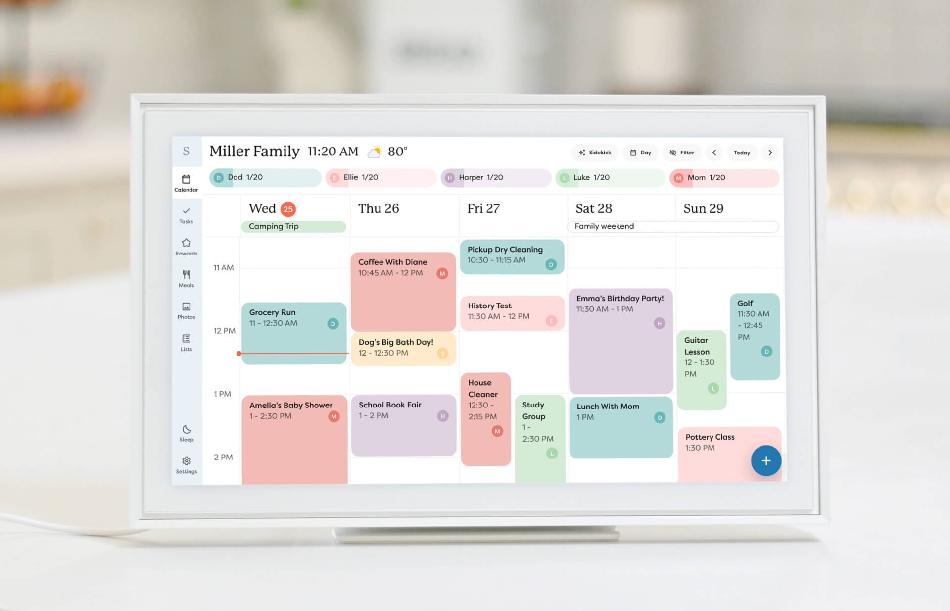 Color-coded weekly events organized on the Skylight 15-inch smart family calendar.